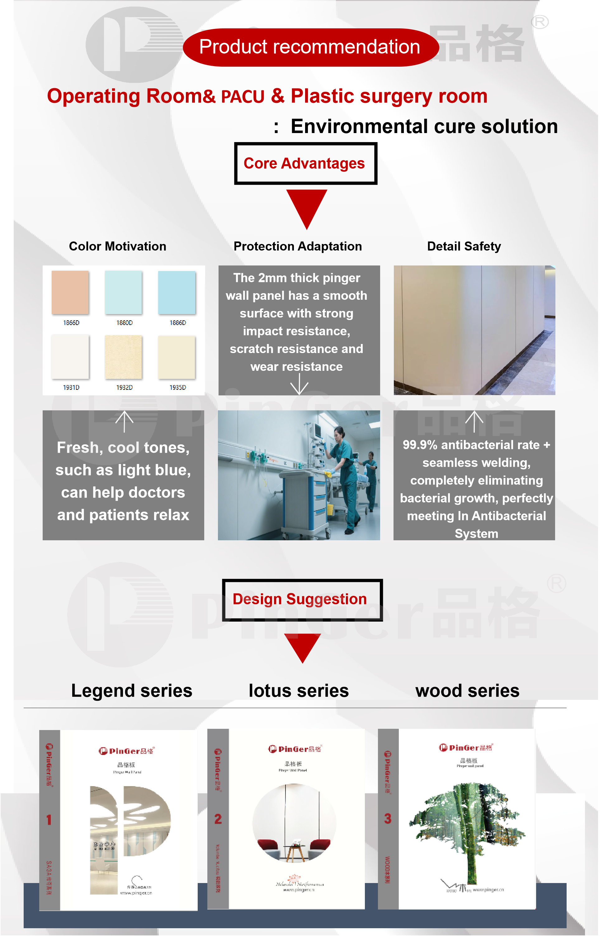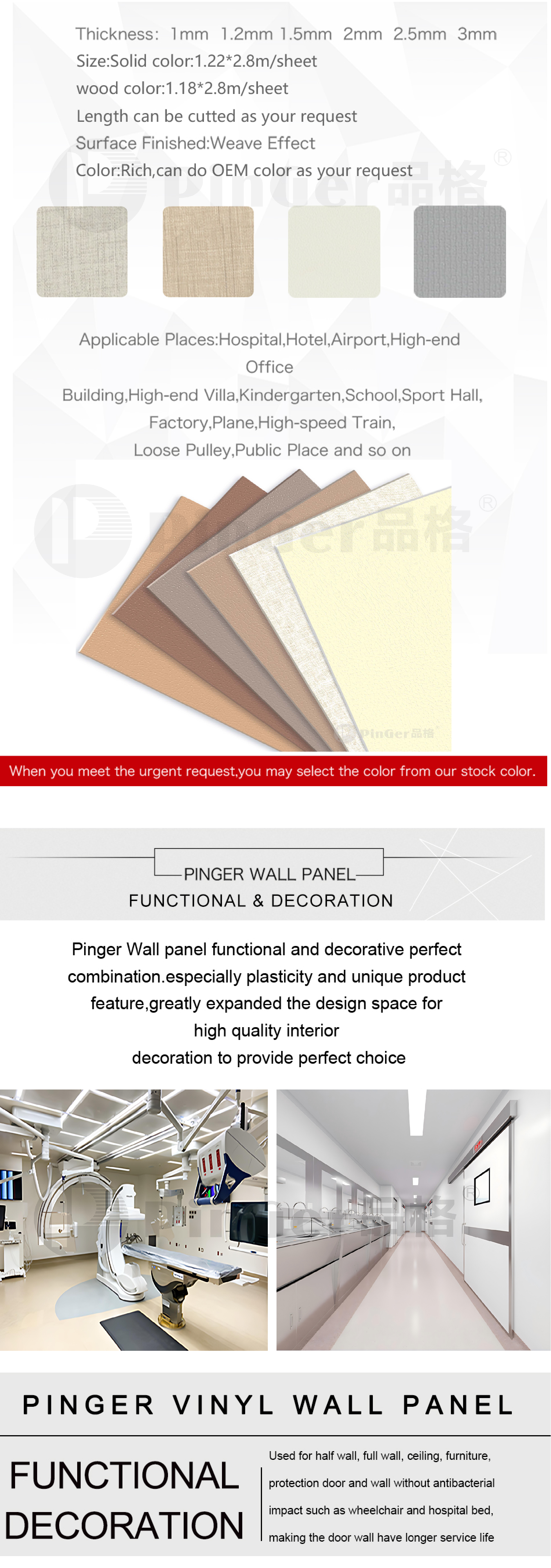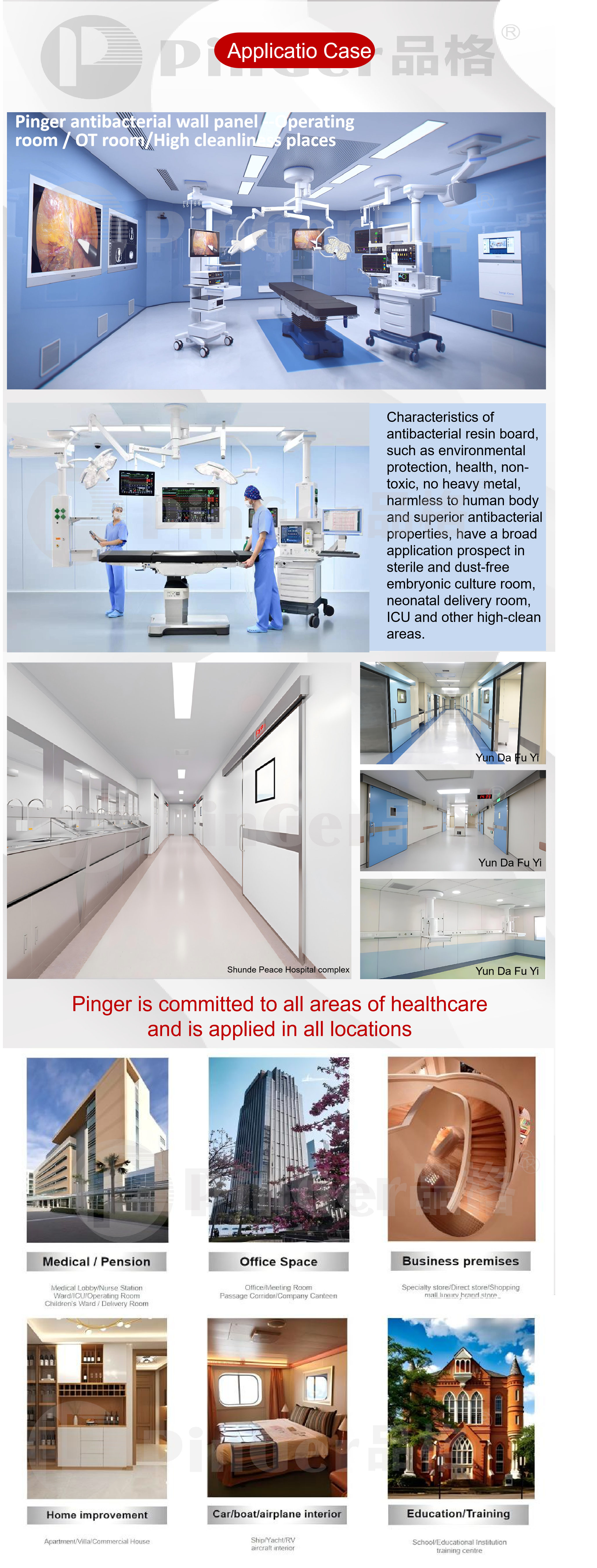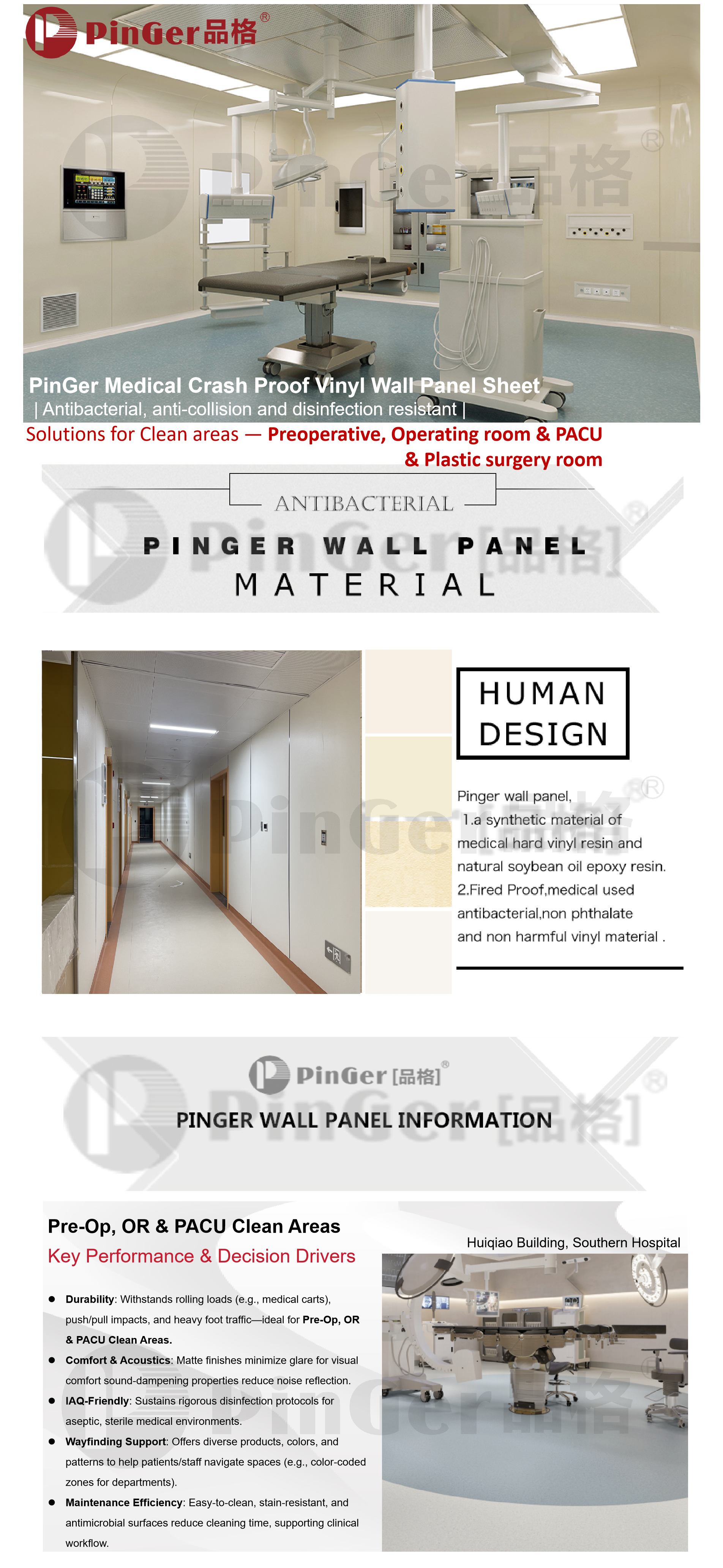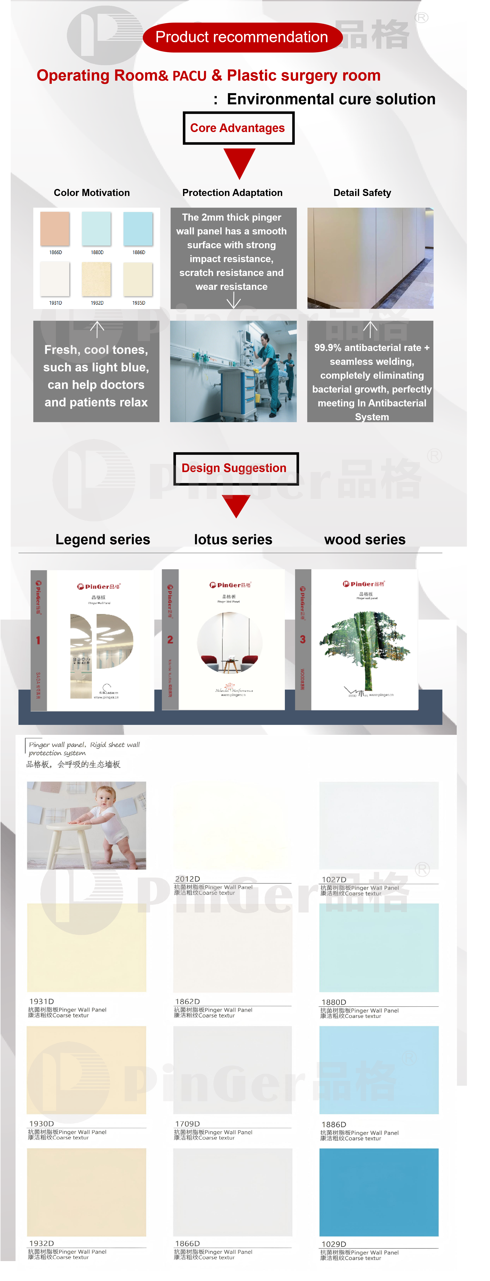 خصائص بينجر مضاد للبكتيريا حائط تتمتع اللوحة، مثل حماية البيئة والصحة وغير السامة وخالية من المعادن الثقيلة وغير ضارة لجسم الإنسان وخصائص مضادة للبكتيريا متفوقة، بآفاق تطبيق واسعة في غرفة الثقافة الجنينية المعقمة والخالية من الغبار وغرفة الولادة حديثي الولادة ووحدة العناية المركزة وغيرها من المناطق عالية النظافة.