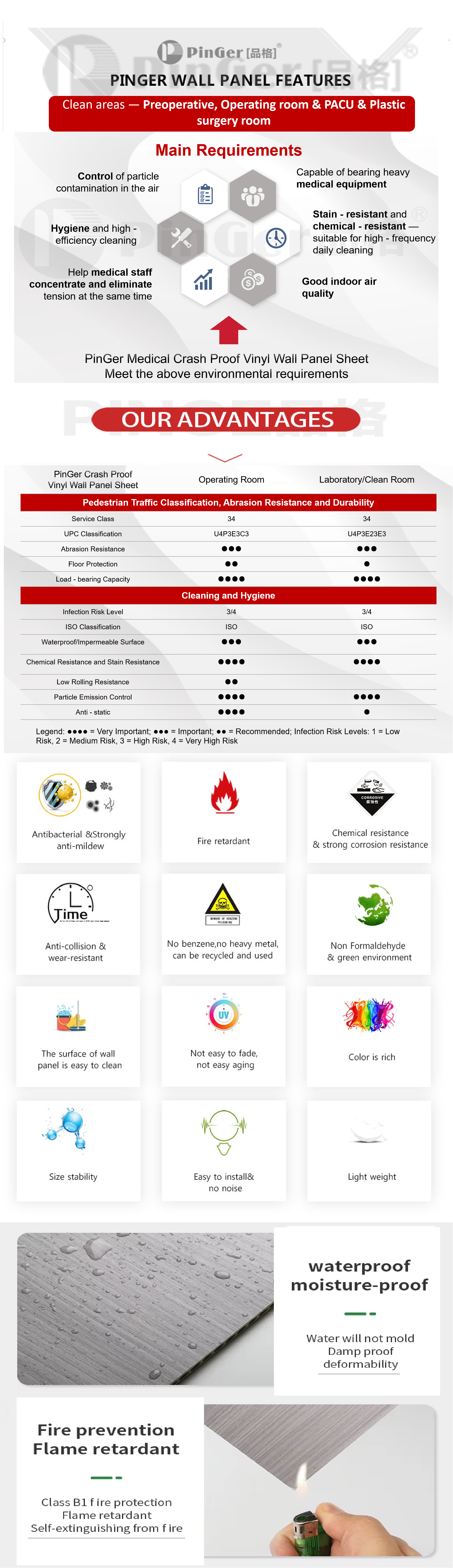 ●مقاوم للحريق. مادة فينيل طبية مضادة للبكتيريا وخالية من الفثالات وغير ضارة