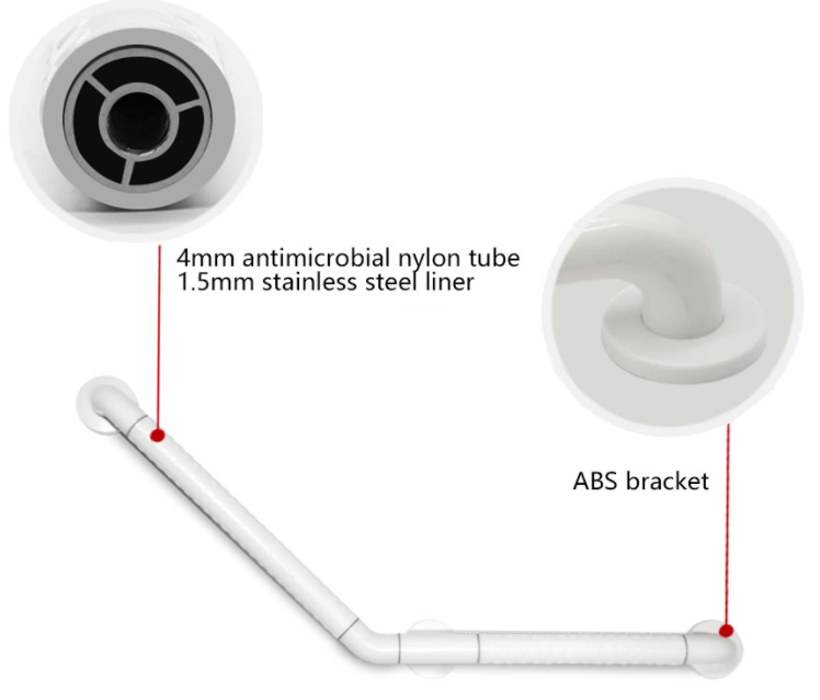 ● توفر قضبان الإمساك المساعدة أثناء الاستحمام أو استخدام المرحاض، وتُحسّن سلامة الحمام وسهولة الحركة لكبار السن وذوي الاحتياجات الخاصة. يوفر الجزء الخارجي المصنوع من النايلون إحساسًا بالدفء وسطحًا مانعًا للانزلاق! يقضي قضيب الإمساك المصنوع من النايلون على بكتيريا السطح في غضون ٢٤ ساعة.