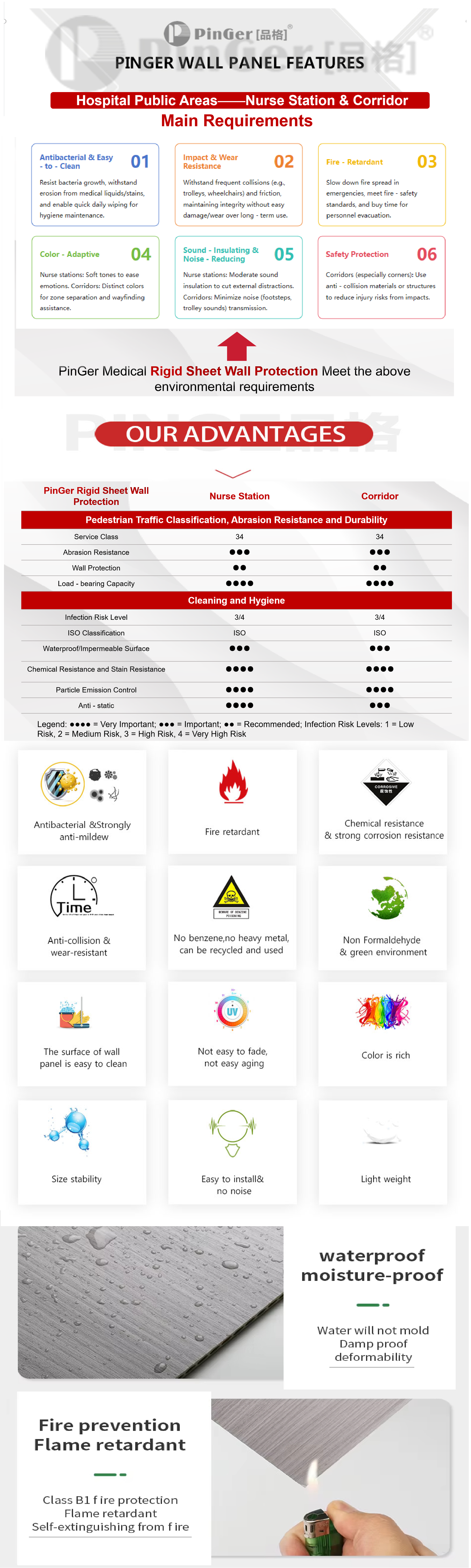 من المستشفيات إلى دور الرعاية ورياض الأطفال، ومن الغرف إلى الممرات، يوفر PinGer مستوى لا مثيل له من النظافة ومقاومة الصدمات، وسهولة استثنائية في الصيانة، وتصميمًا متميزًا.